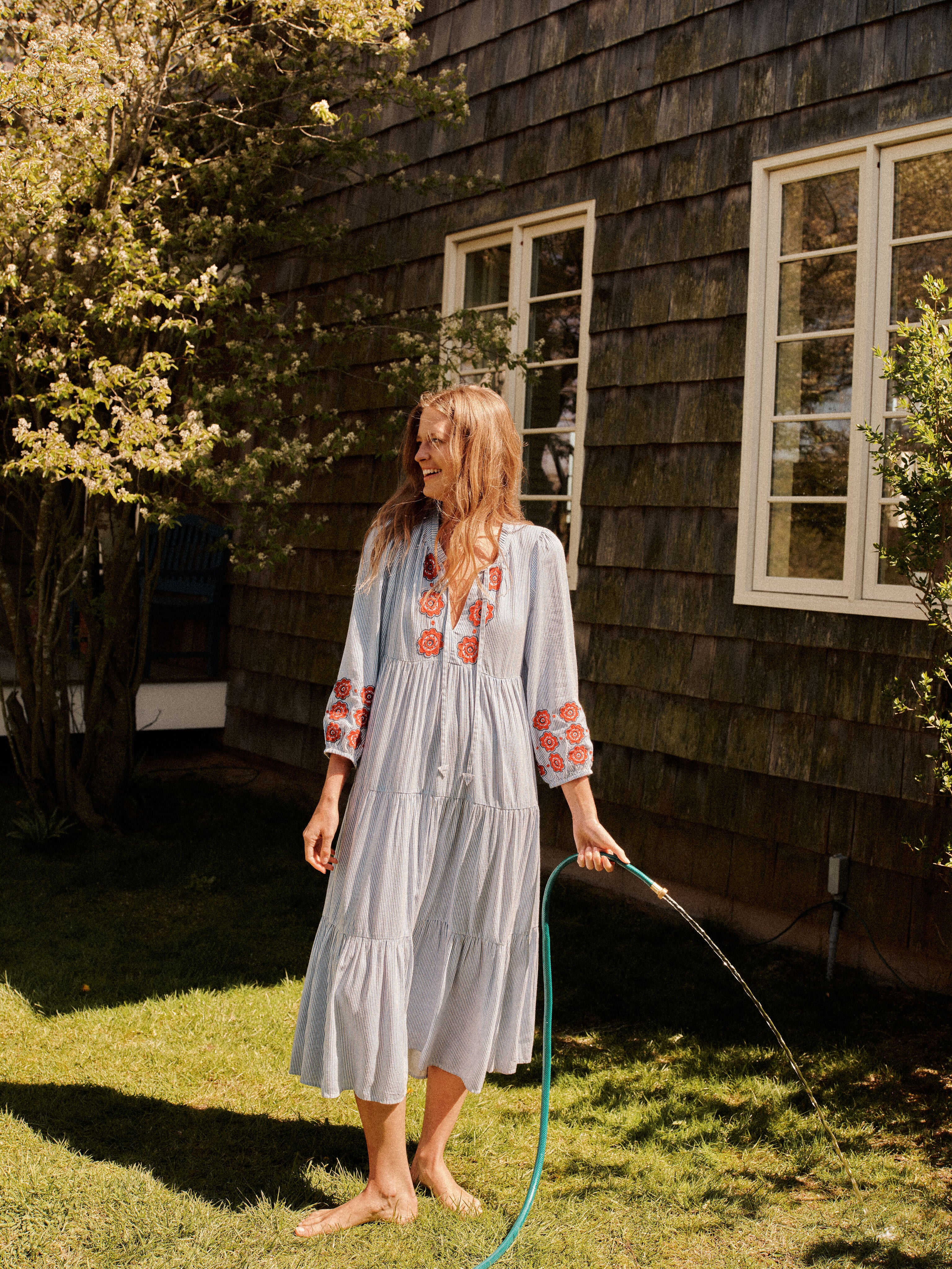 The Poppy Stripe Long Sleeve Salty Paloma Caftan is effortlessly elevated — and perfect for warm weather escapes and weekend getaways. With a ruffled collar and tassel ties that embody bohemian style. as well as a light and breezy feel. this is the piece you will want to throw on in the morning and keep on all day. zero thought required. Pair with sandals and sunnies for poolside sips. or with boots and gold hoops to dress it up for dinnertime.