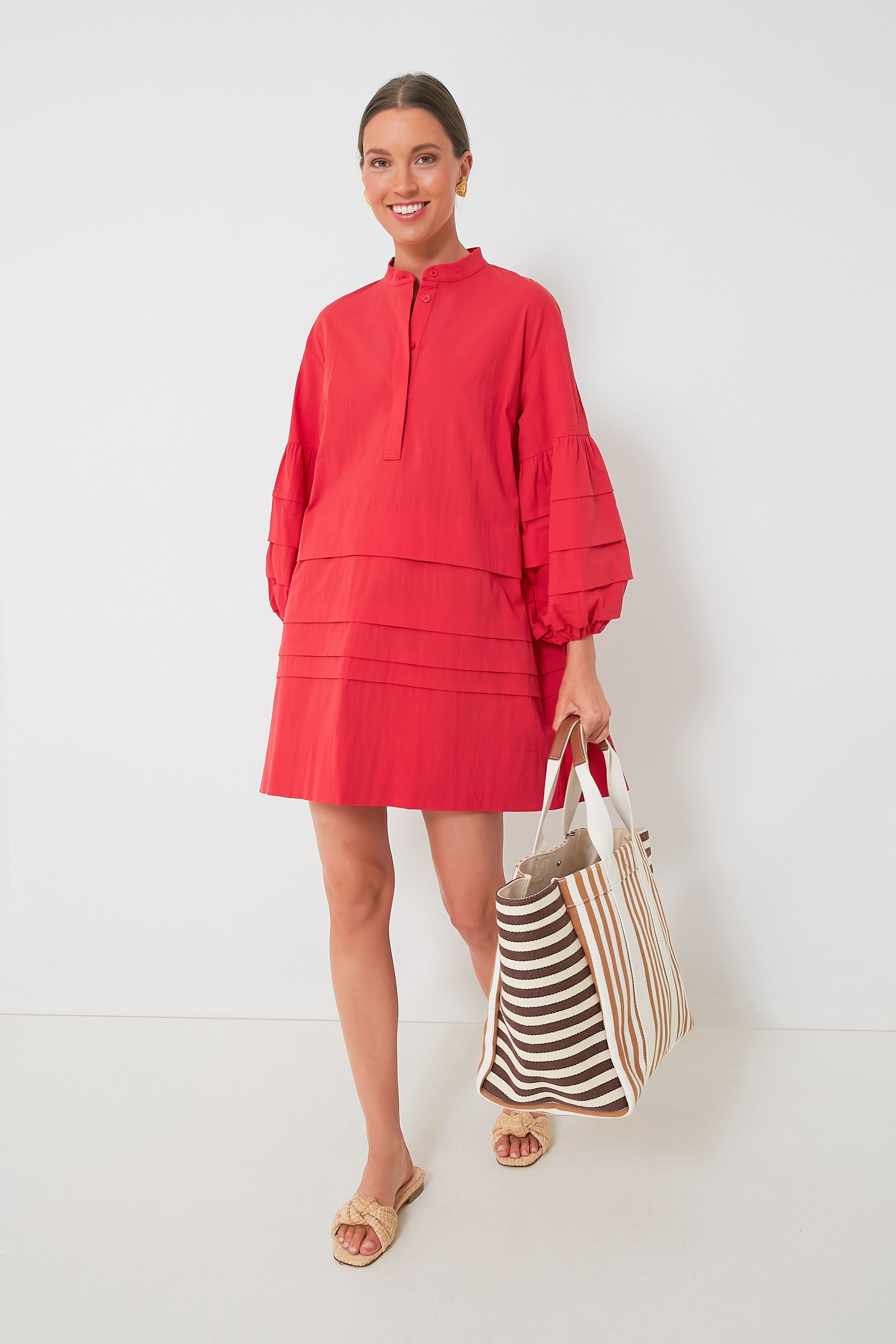 Let this Red Chelsea Dress be your statement piece for everyday wear and events alike. A red dress is every woman's best friend—and this one is no exception! Easy to style as a pop of color for the work day or drinks with your girls. the boxy silhouette is flattering for everyone and will become your effortless go-to piece. Designed with tiered paneling and balloon sleeves. this versatile red dress is equal parts tailored and relaxed. It's made with the woman who values both style and comfort in mind.