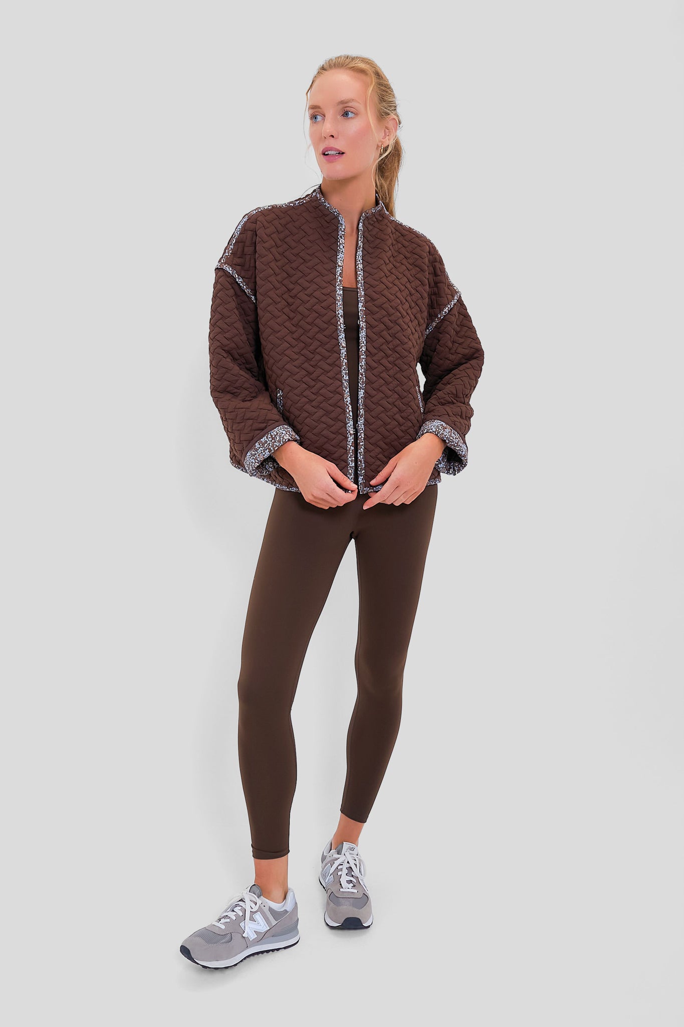 The Celeste Jacket is a cozy quilted layer that can be worn two ways. With front hook and eye clsoures. side pockets. and drop shoulders. this boxy silhouette is perfect for wearing over leggings on the way to the yoga studio or with denim and sneakers for casual weekend activities!