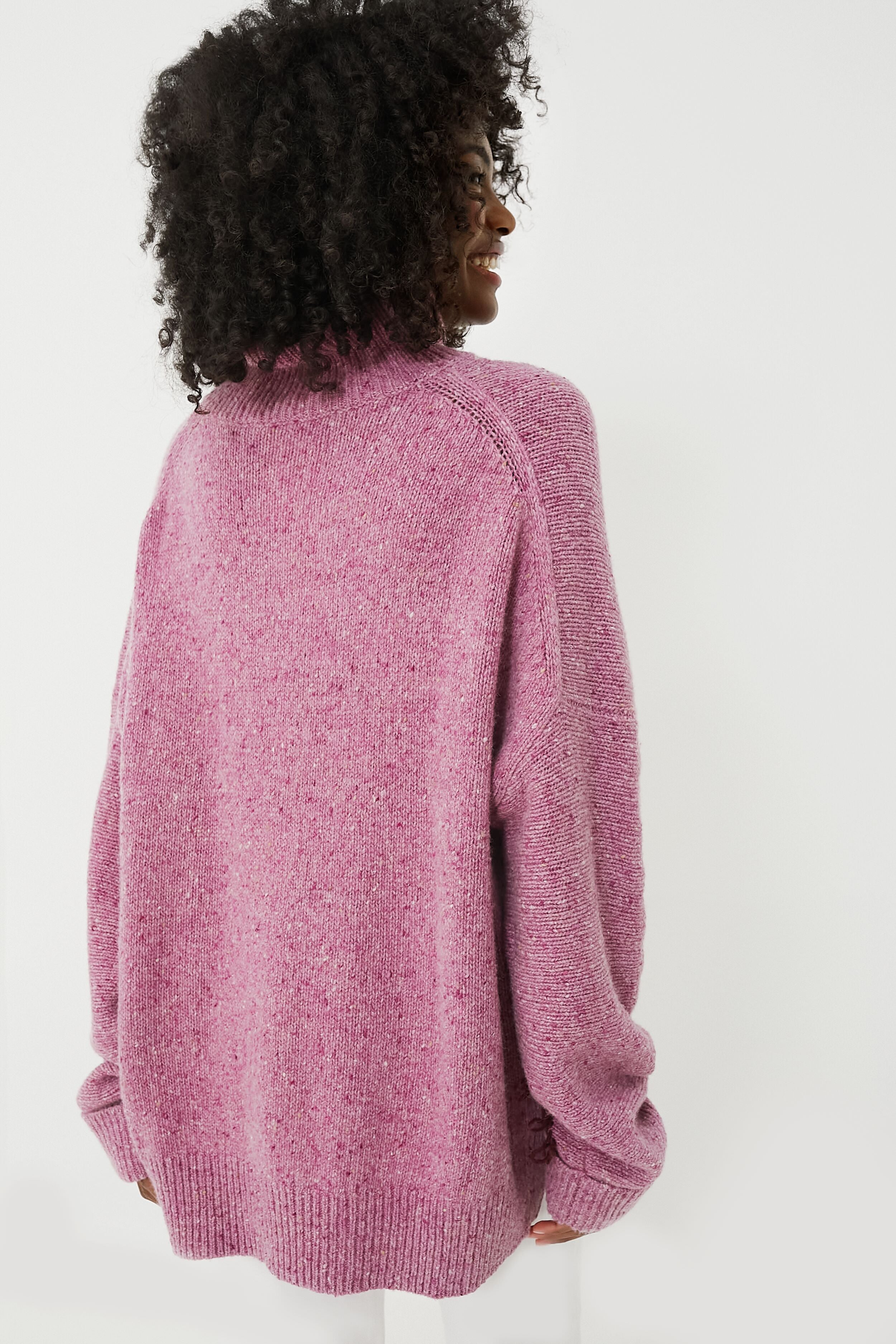 The Rose Benoite Turtleneck Sweater will keep you cozy without compromising style! Featuring dropped shoulders for a relaxed fit. a stunning diamond knit pattern design. and ribbed detailing throughout. this piece has it all! Complete with a gorgeous muted pink hue. this top pairs easily with denim. trousers. skirts. and more for a fun and feminine look. Whether you're relaxing by the fireplace or braving the cold. this beauty does the trick.