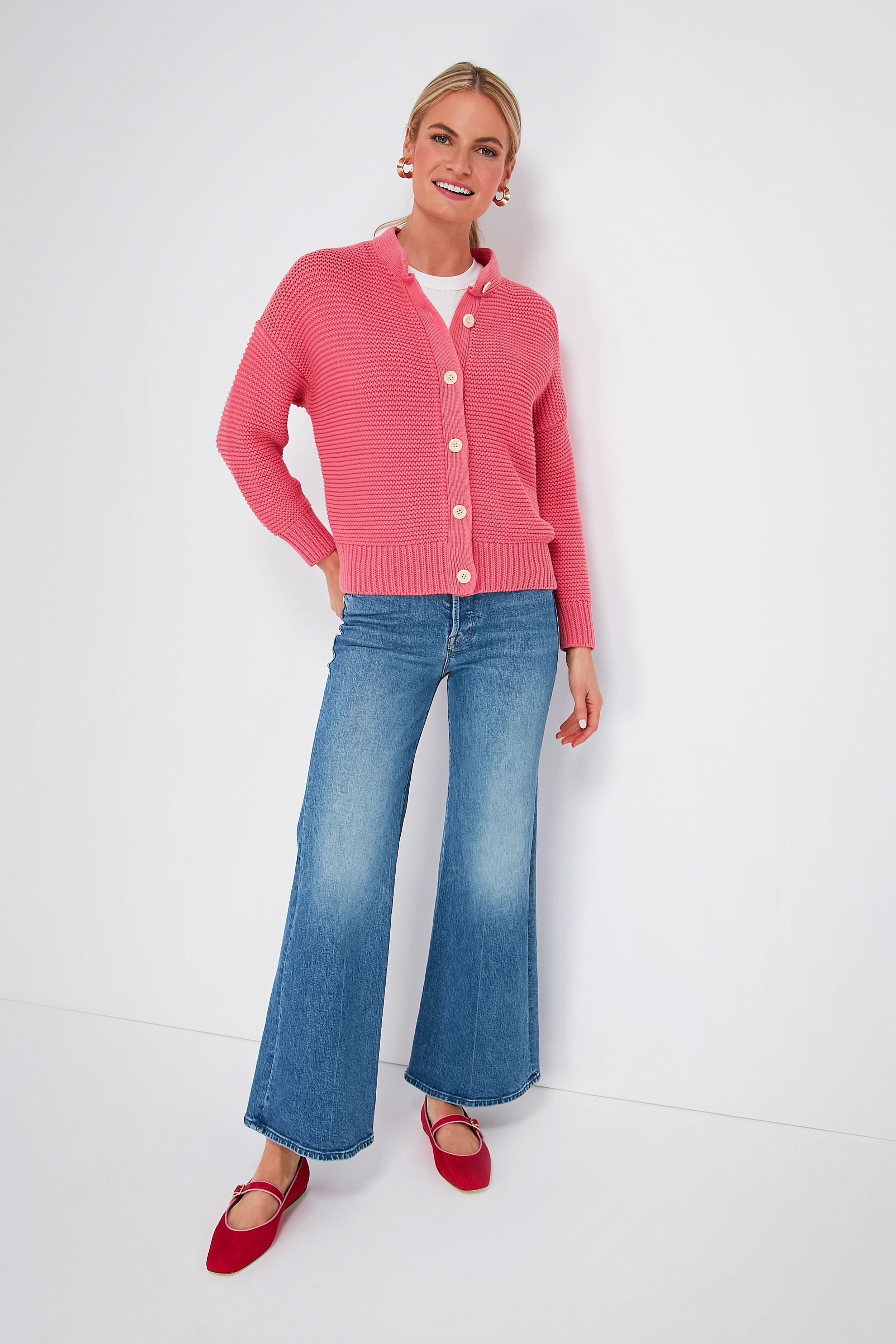 In the bubblegum shade of our dreams. the Rouge Nico Chunky Cardigan is the knitwear your closet has been missing. Slightly slouchy with its dropped shoulders. yet super sophisticated with a round neckline and oversized buttons. this silhouette is made from breathable cotton which allows it to be worn in both cool and warm weather. Style with denim and flats for a casual weekend look. or throw it over your best sundress for when evenings at the resort get a bit chilly.