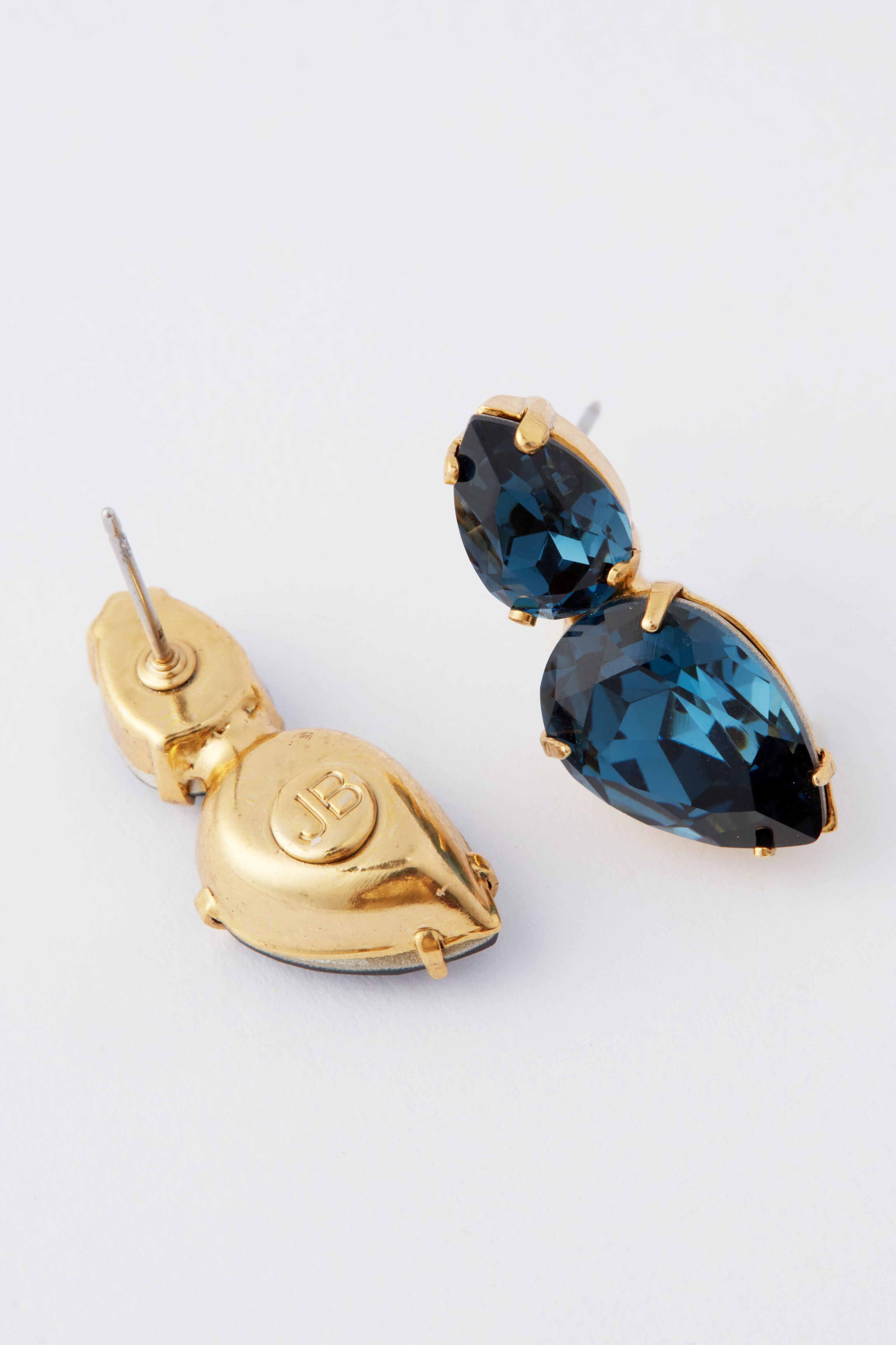 Crafted from a duo of pear shaped crystals arranged at an angle for a chic yet modern look. the Sapphire Nadine Earrings are the perfect way to complete an outfit. With a subtle drop silhouette that is wearable for everyday but special enough for occasions too. these glimmering gems are elegant yet fun — making them a style you simply have to have in your jewelry box. Pair with dresses. blazers. and blouses alike for a sophisticated styling.