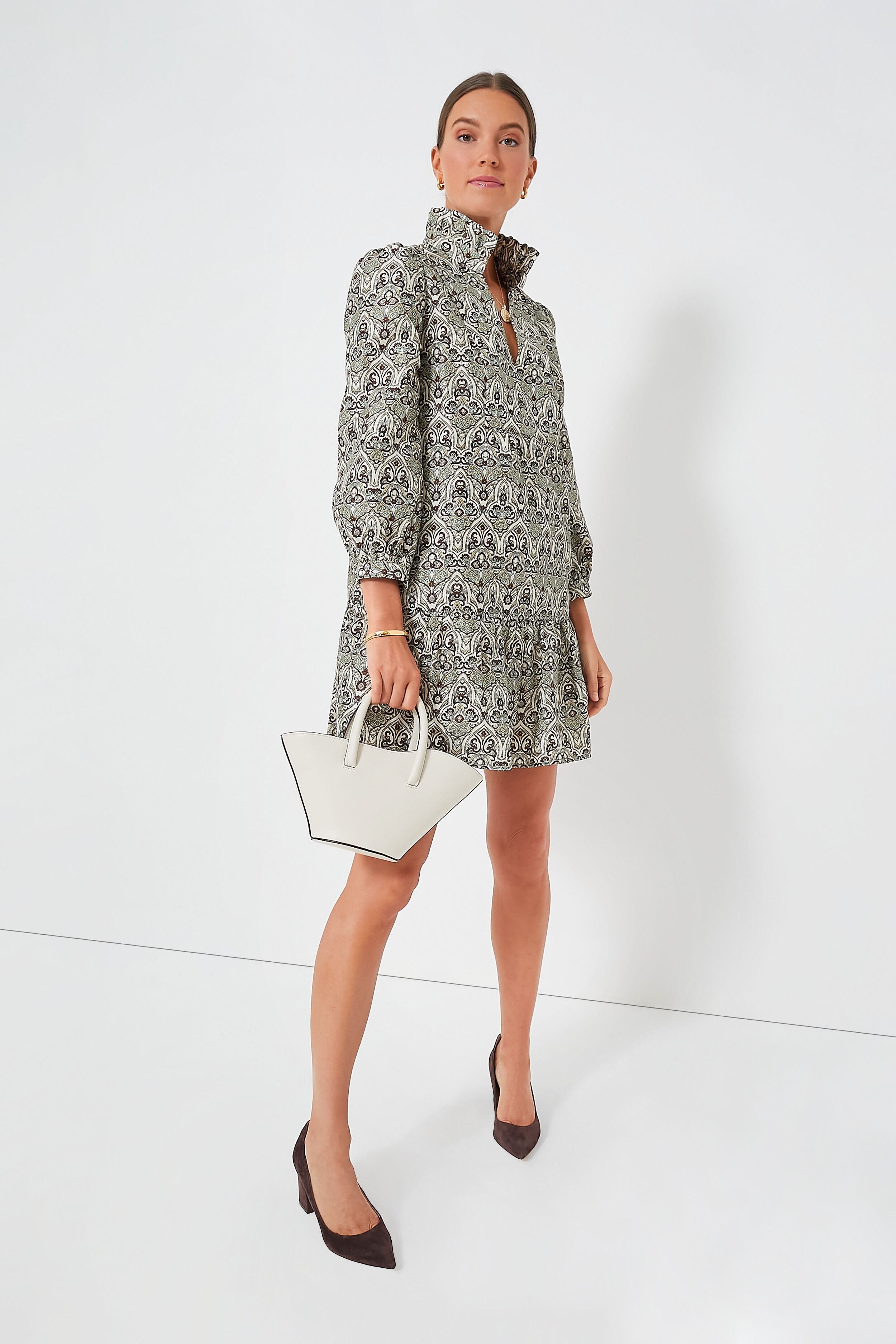 Neutral and striking all in one. the Sicilian Stained Glass Palmerston Dress is the dress that can do it all. A ruffled stand collar and long sleeves play for a sophisticated feel while the mini length and flirty skirt make us want to party all night long. Book dinner at that new restaurant you've been wanting to try and add platforms to this sassy stunner for date night and dancing afterwards.