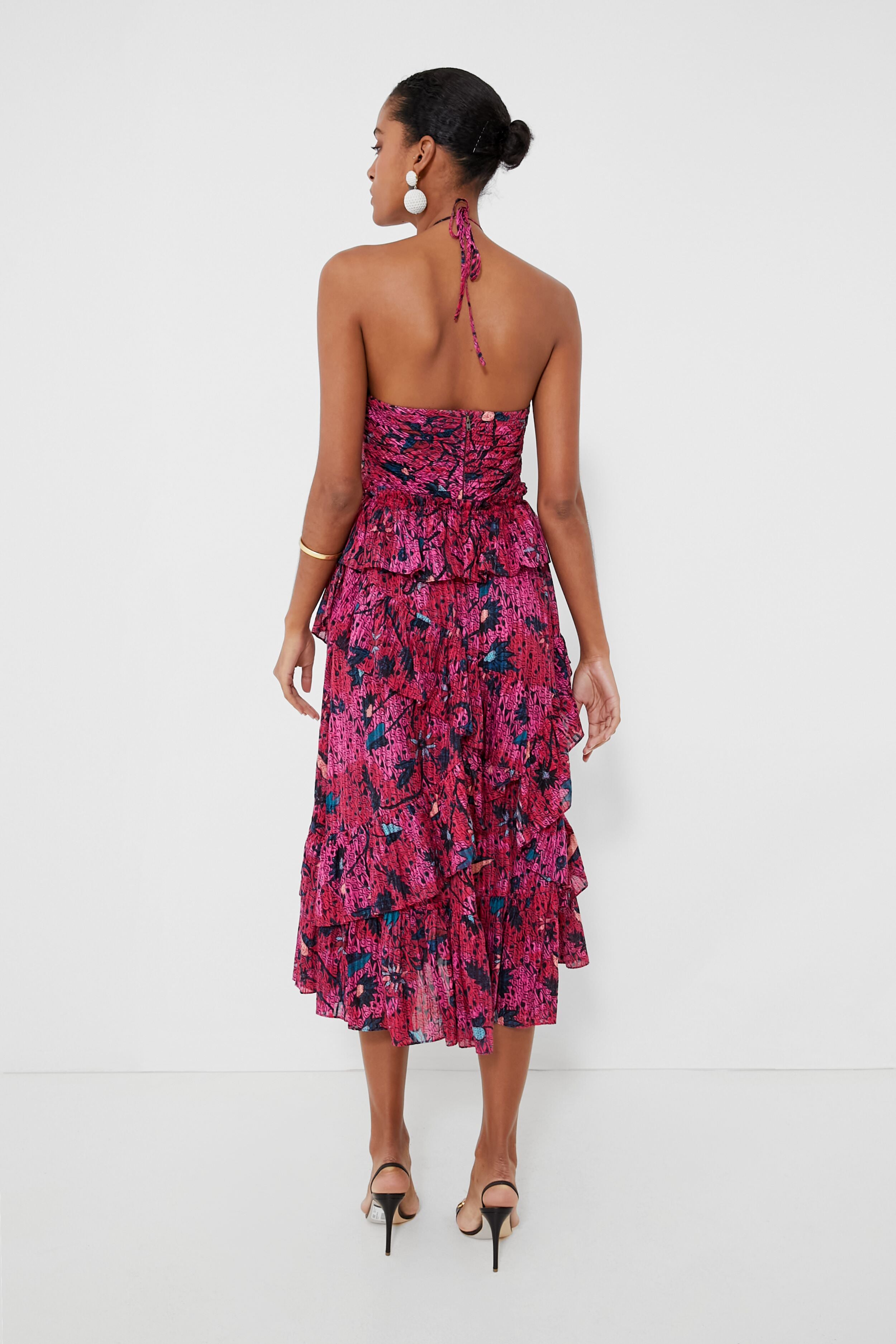 Defined by intricate details. the Snapdragon Simona Dress is simply beautiful. Featuring a flirty tiered ruffle skirt and cutout bodice. this stunner is sure to stand out. The elasticized waist and halter neckline also ensure a flattering fit. perfect for dancing the night away out on the town or at an outdoor wedding. Style with platform pumps. statement earrings. and a shoulder bag for your next event.