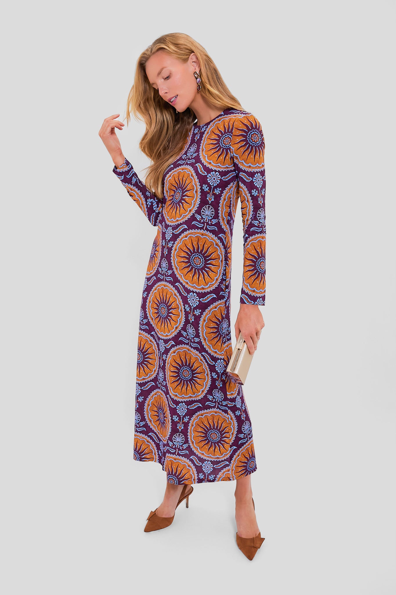 A simple silhouette with a groovy pattern. this look is sure to "wow" wherever you wear it. The maxi length. long sleeves. and slip-on design are among our favorite practical details. Pair with flats or heels and your favorite jewelry!