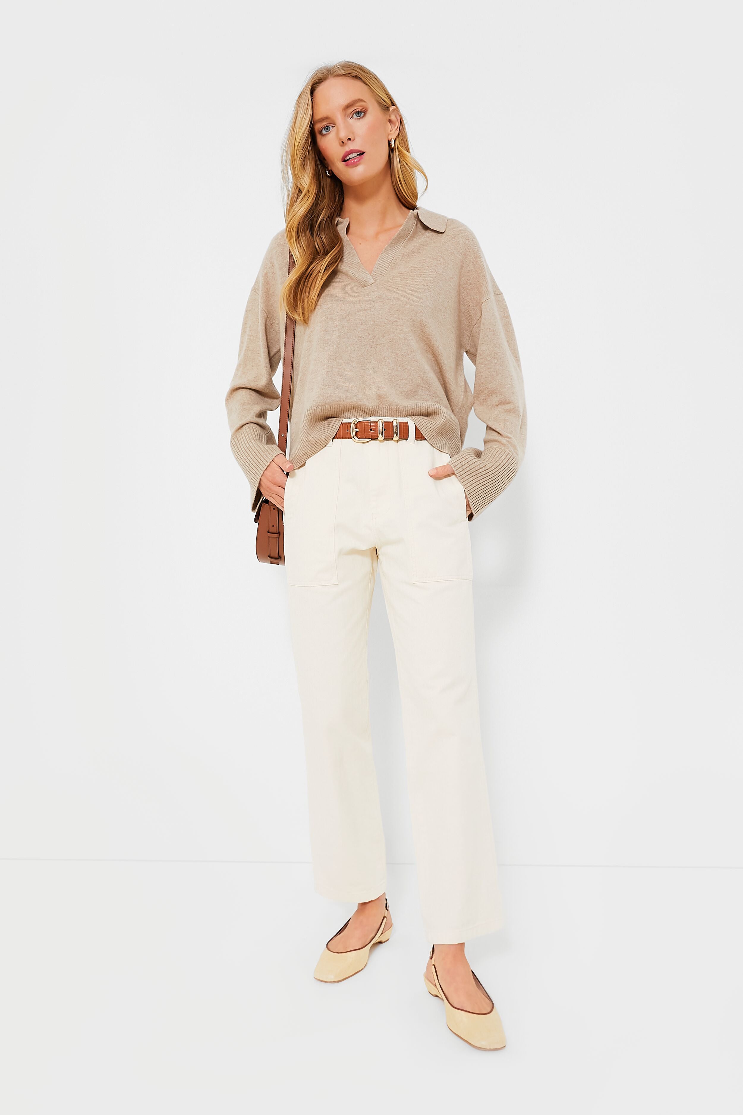 Beautifully crafted from buttery soft cashmere. the Stone Ally Polo Pullover is made for ultimate warmth and comfort. An essential for your wardrobe. this clean yet comfortable sweater features on-trend notched collar neckline. drop shoulders. ribbed cuffs. and a relaxed fit. We are styling this silhouette with denim. trousers. skirts — it's perfect for slow weekend getaways. chilly afternoon strolls. lunch dates. and more.