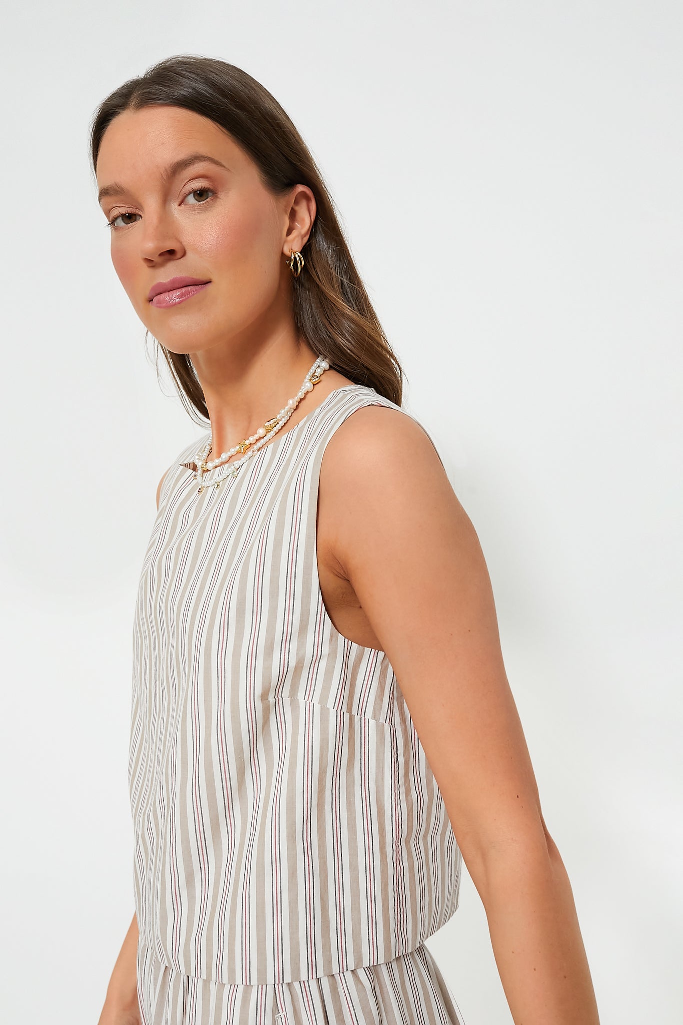 The Stripe Mabel Top is a style staple everyone needs to build their capsule wardrobe. Featuring a wider neckline. bust darting. and a slightly cropped length. this number can be styled a million different ways and each time it looks perfect! Pair with the Stripe Vivianne Drawstring pants for a matching moment or with a white maxi skirt and gold hoops for a flowy and fashionable look.
