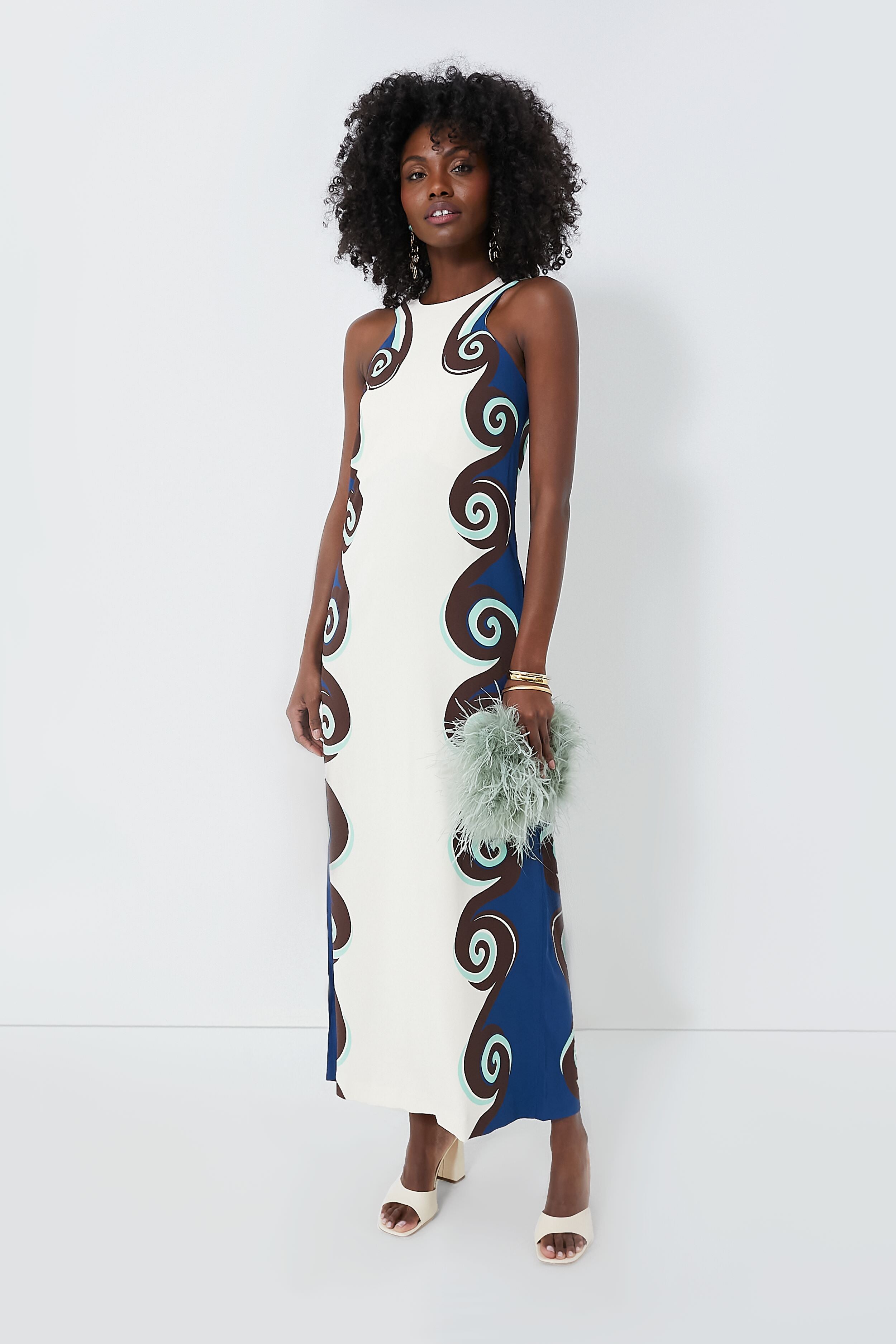 Believe us when we say this maxi is truly a must-have! The Stucco Placee Racer Dress features a gorgeous motif down the sides that is hand-placed by Italian artisans to ensure a sleek and flattering look. as well as a body-skimming column silhouette. Finished with a touch of sporty style from the racerback bodice. you can confidently add some extra sass to your stride. Pair with platform sandals for all your special occasions this season. or go with sneakers and a shoulder bag for an easy yet elevated dinner look.