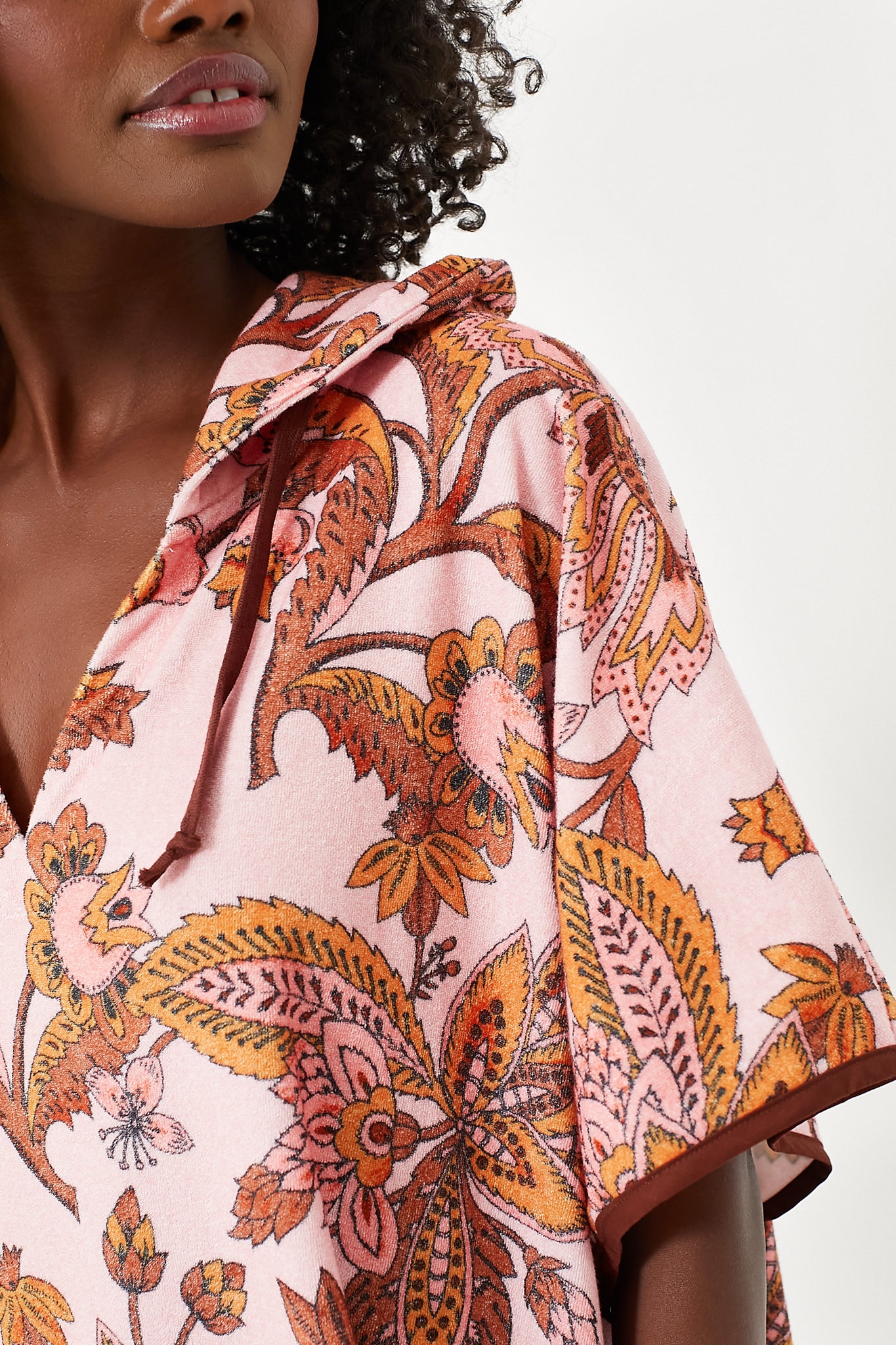 A beach towel-esque number that's perfect for throwing on after a long day in the sun? Sign us up! The Sunset Chintz Terrycloth Coverup screams unfussy dressing with it's relaxed fit. drawstring hood. and kangaroo pocket to hold your essentials — not to mention that fabric that feels oh-so-soft against your skin. Whether you are headed to the snack shack or walking the boardwalk. this mini is warm weather ready!
