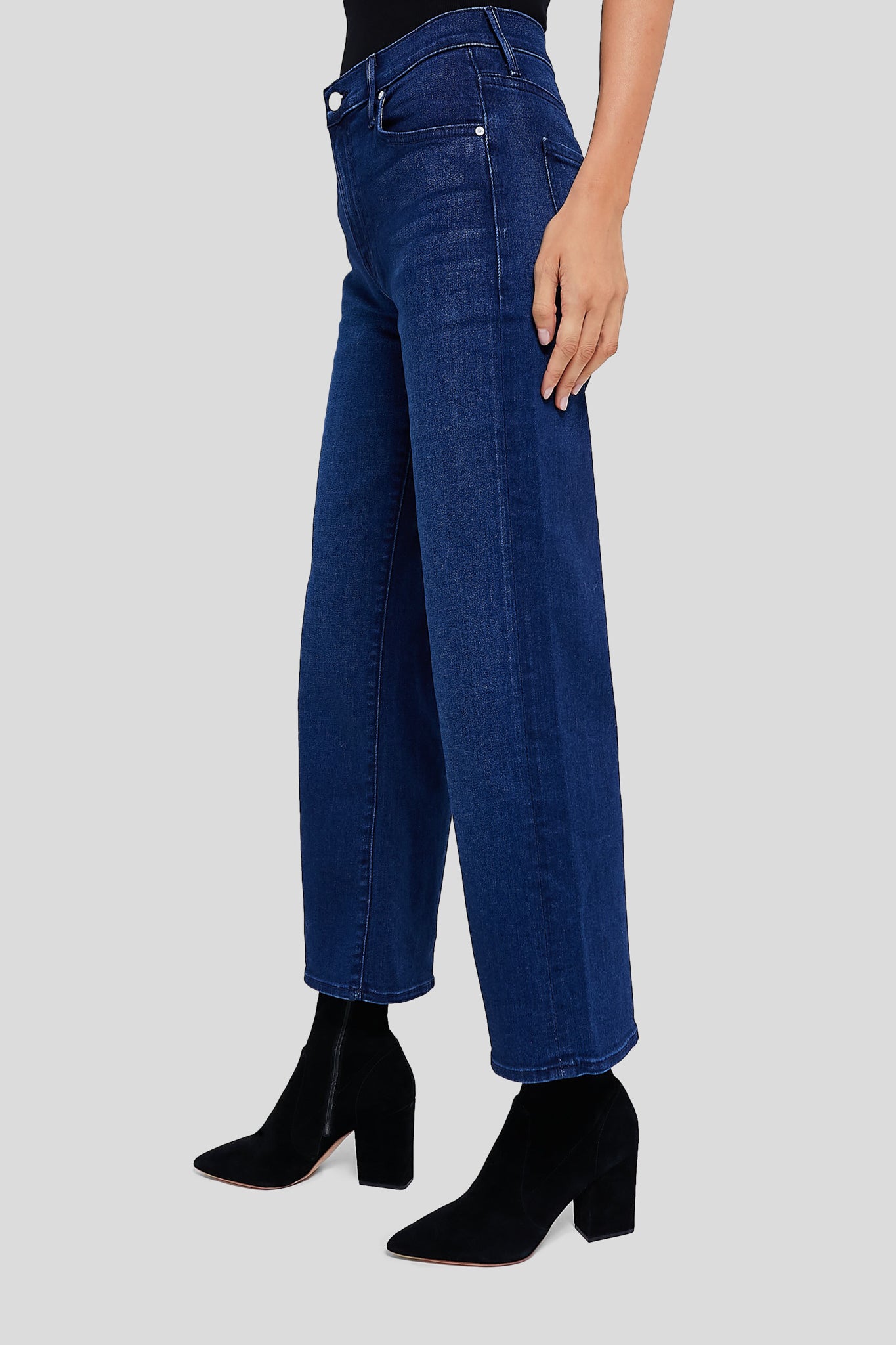 Cut from stretch fabric. this mid-rise wide-leg silhouette features ankle-length inseam and clean hem. With a dark blue wash that will complement any top you style it with. pair with a body suit and heels for a night out. or with sneakers and a top for a casual day around town.