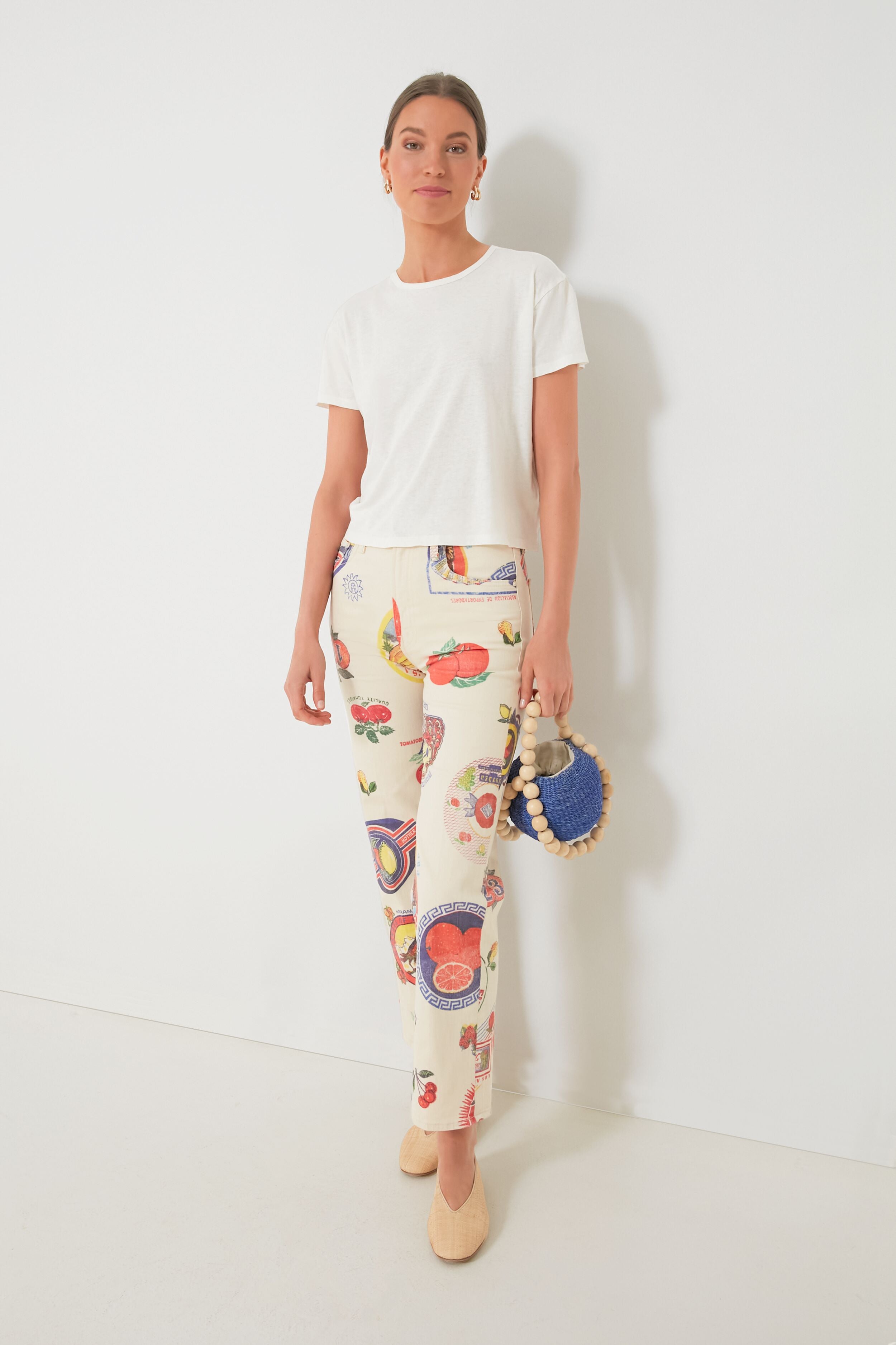 The That's Bananas The Rambler Zip Ankle are going to have you peeling your very best with their bright white hue and their fresh and fun print. These high-waisted jeans feature a wide straight leg. a zip fly. and a slightly cropped ankle-length inseam perfect for warmer weather ahead. Adorned with faded fruit sticker graphics and hand-drawn doodles throughout. you are sure to fall in love with these quirky-cool bottoms. Pair with an easy tee and sunnies for a simple outfit formula with plenty of character. or add colorful accessories like sandals and a tote to lean into the whimsy of these fabulous pants!
