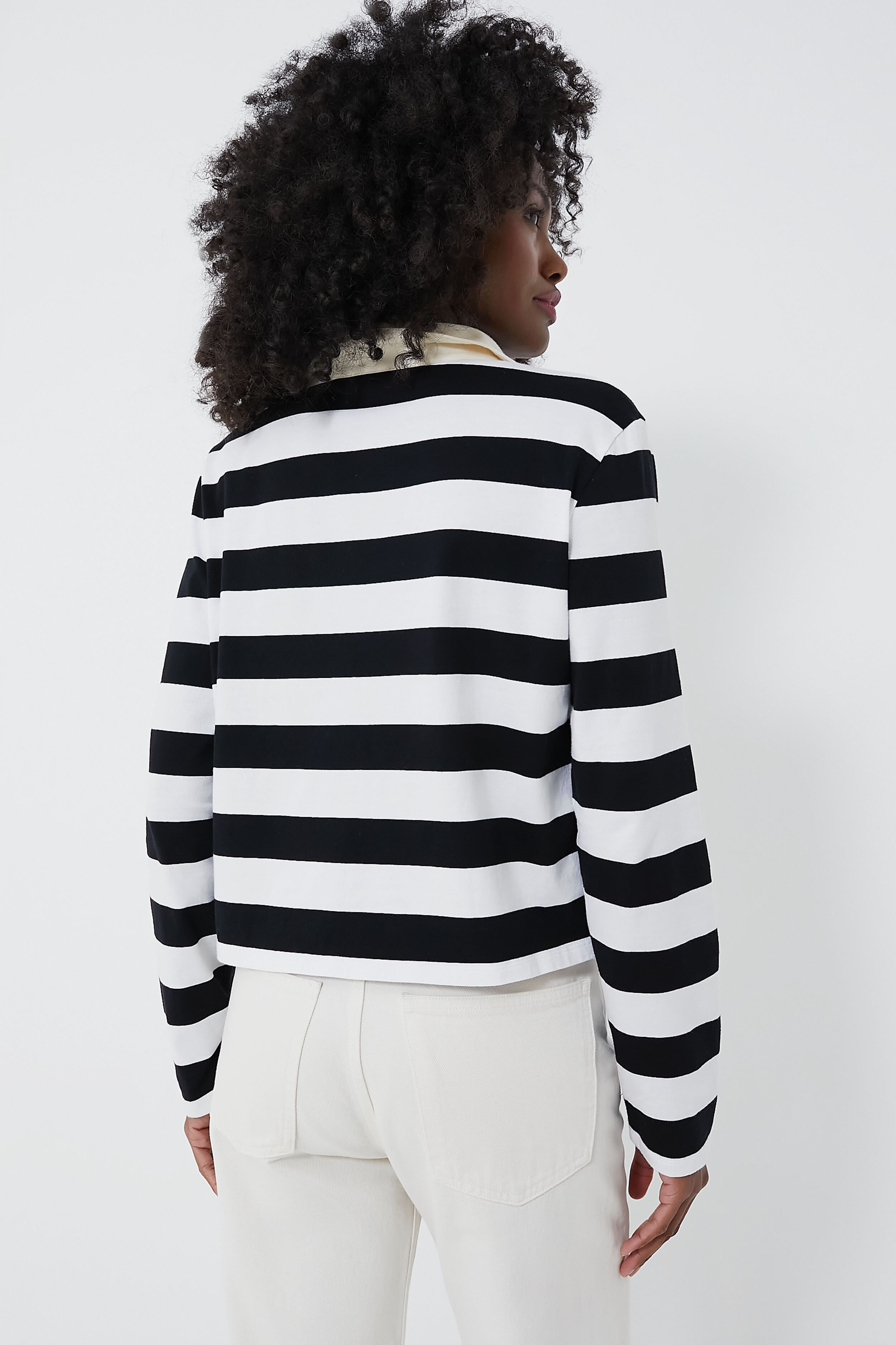 In a super-soft cotton. the White Black and Cream Mini Rugby is the ultimate sporty-cool casual top. With a slightly boxy fit. this cropped silhouette features classic stripes. a contrast collar. and a partial button front placket for that timeless style we know and love. Wear it with everything from shorts to denim to leggings for off-duty weekend dressing.