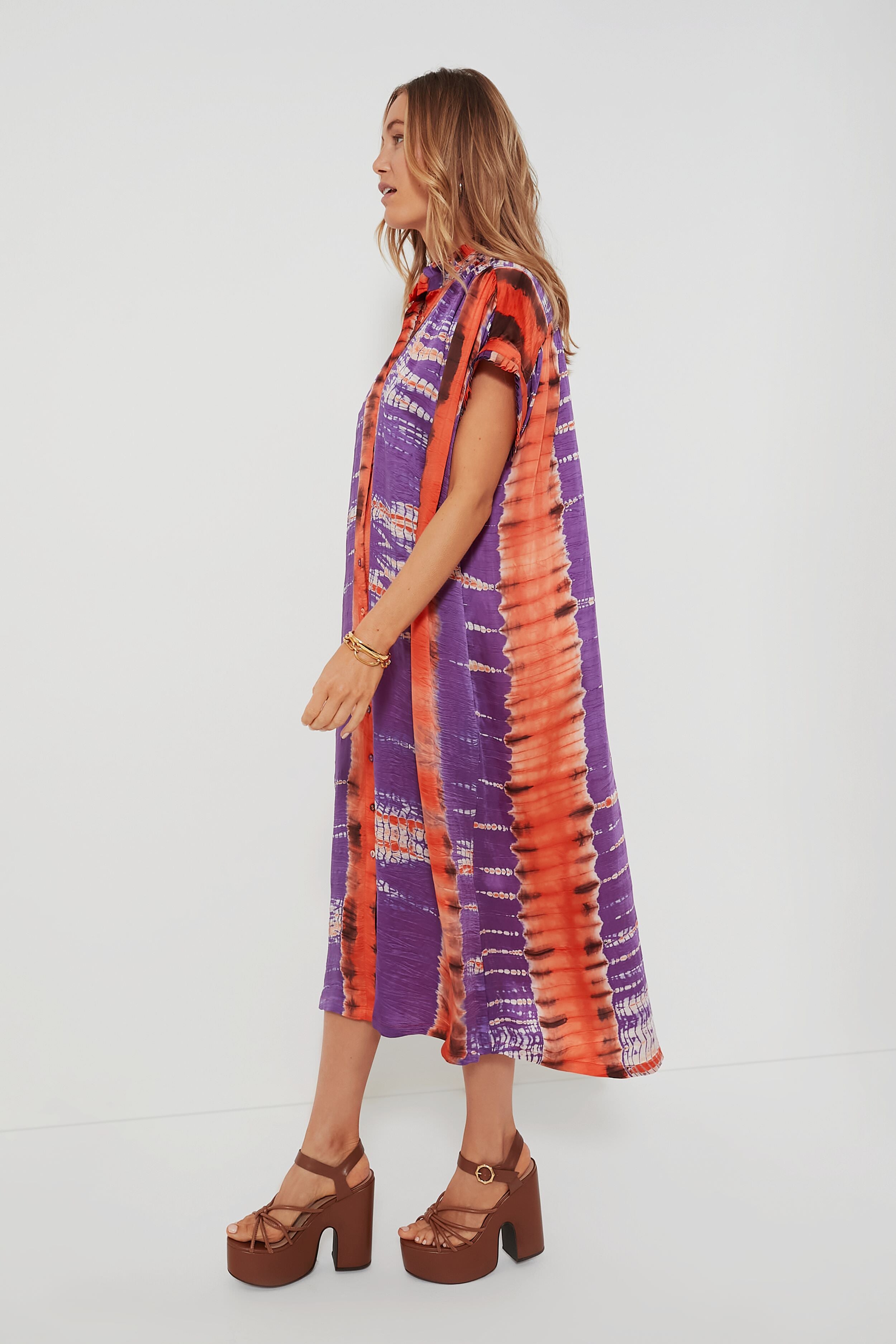 Slip away to sunny days outside with the Valerie Kaftan. Rich in colorful hues. this tie dye style features a spread collar. short sleeves. a curved hem. and a removable tie at the waist so you can choose to wear it loose or cinch the waist. This relaxed silhouette is breathable and allows for optimal movement! Style with sandals and your favorite sunnies for a day in the garden or brunch with friends.