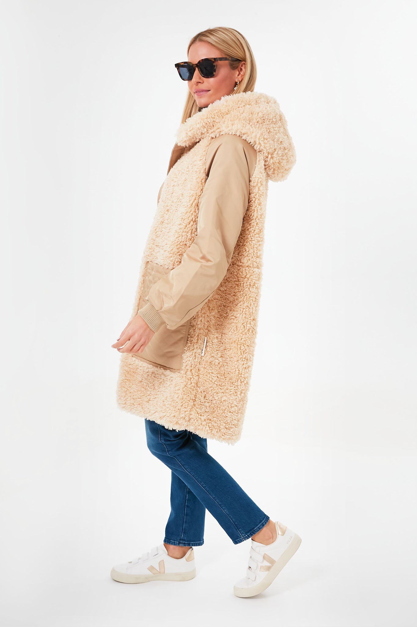 Seriously. is there anything cooler than a teddy coat for winter weather? We think not. The Vaniglia 9128 Coat takes this classic and elevates it in a mixed media style we are loving. then adds a hood and quilted patch pockets for functionality. Meant to keep you warm and cozy in a knee-length silhouette. we suggest pairing with denim and a gorgeous bag for an urban look. or with leggings and a beanie for a quick yet chic moment.