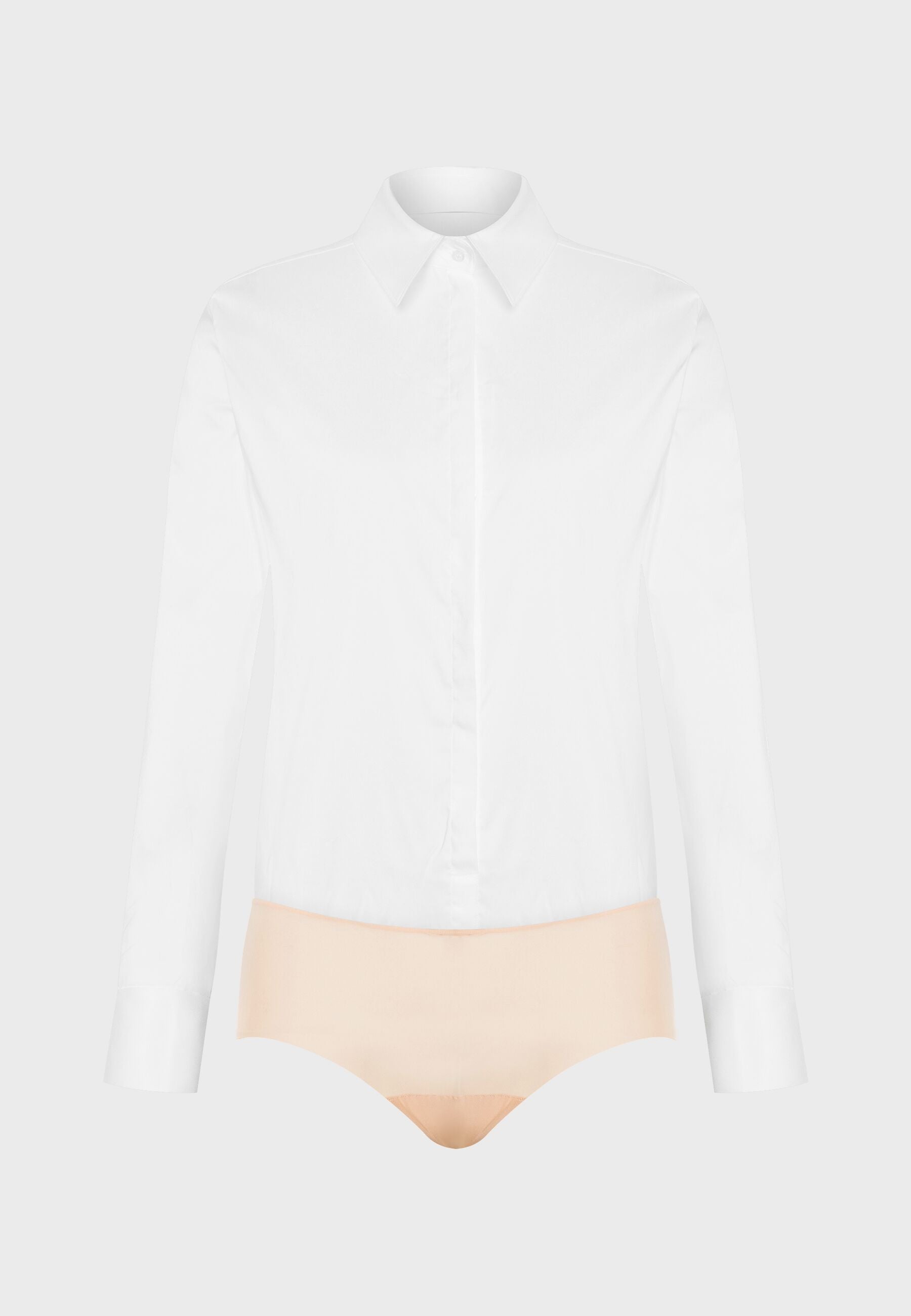 The White London Effect Panty Bodysuit combines a classic white blouse with an integrated bodysuit to create a real must-have item. Perfect for when you want to tuck your button down into your jeans or trousers but don't want the bunched up. bulky feel. this one-piece will be your go-to styling silhouette. Complete with a polished collar and a concealed button front placket. this ladylike piece definitely belongs in your closet!