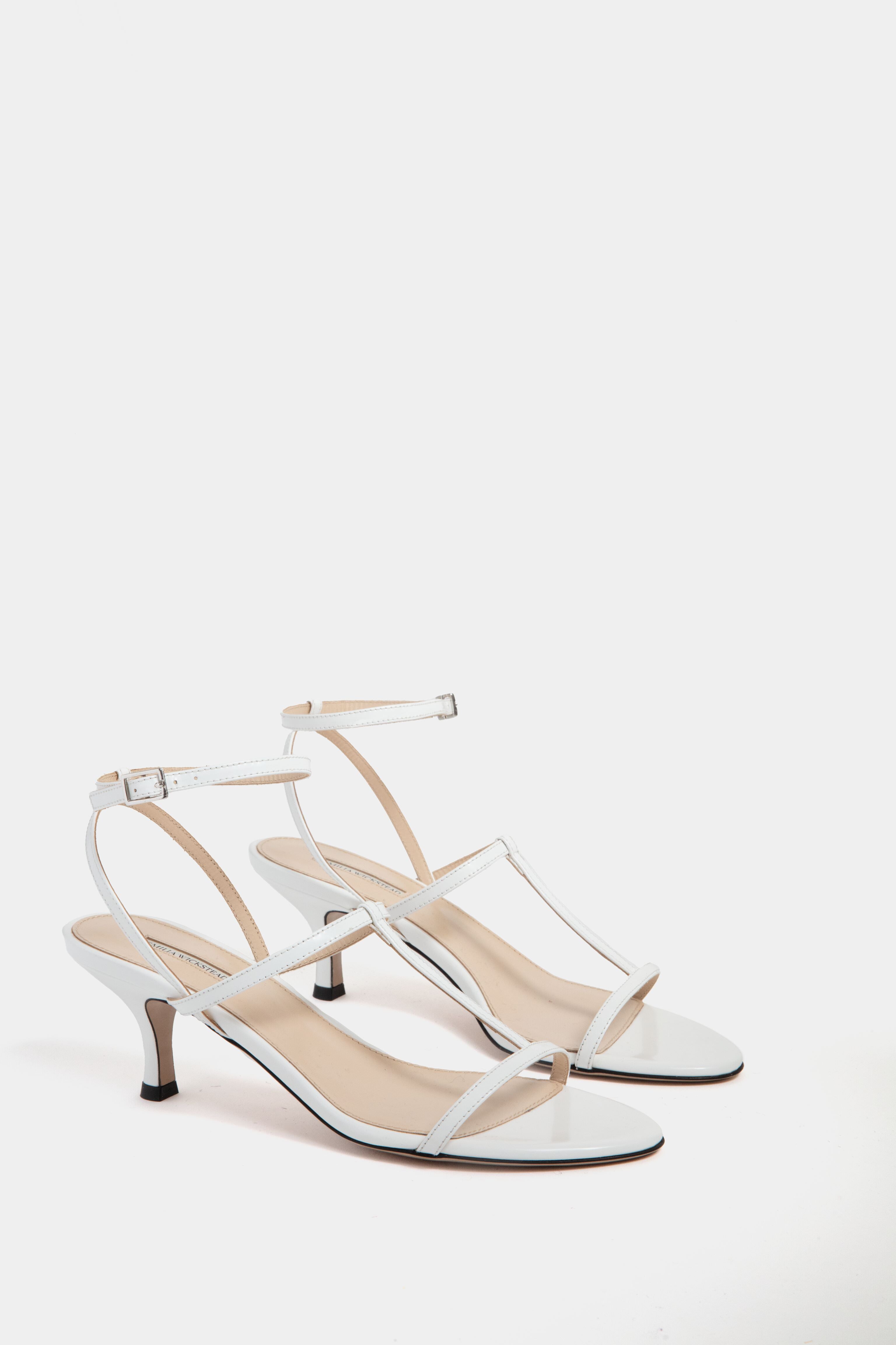 Proving that the most minimalist designs can have the biggest impact of your outfit. the White Novie Leather Kitten Heels are crafted for a barely there silhouette. Referencing the Emilia Wickstead city to sand approach to dressing. the shoes sit on a modest heel and feature a buckle fastening for functional day-long wear. Pair with a flirty top and pants for date night. or with a maxi dress and clutch for a cocktail party.