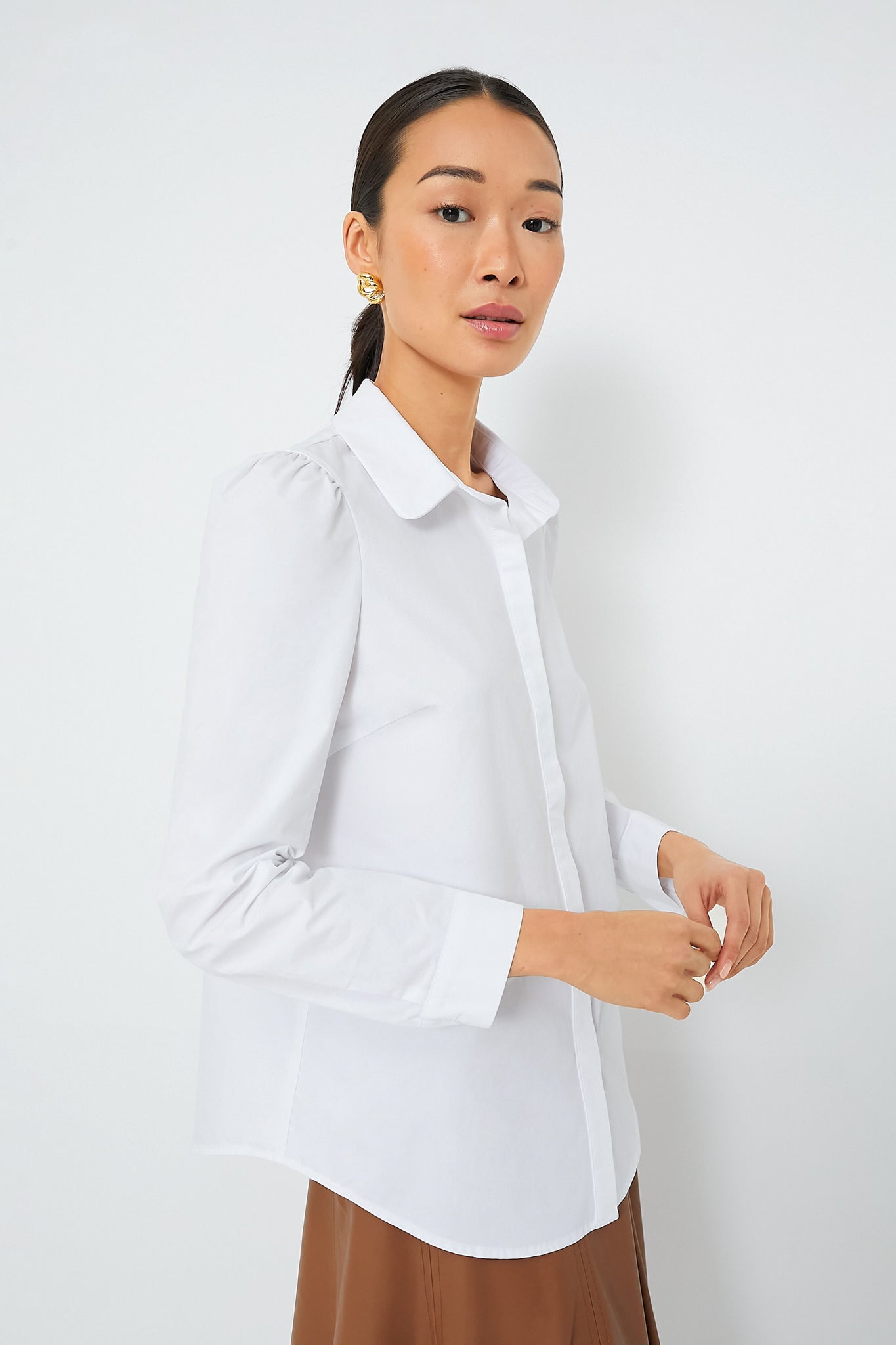 Every girl needs a perfect crisp white button down (or two. or three...)! The White Penelope Button Down features a subtle shoulder puff and adorable peter pan collar. This blouse is the perfect mix of classic meets feminine- pair with everything from denim to trousers. sandals to sneakers. for easy year-round styling!