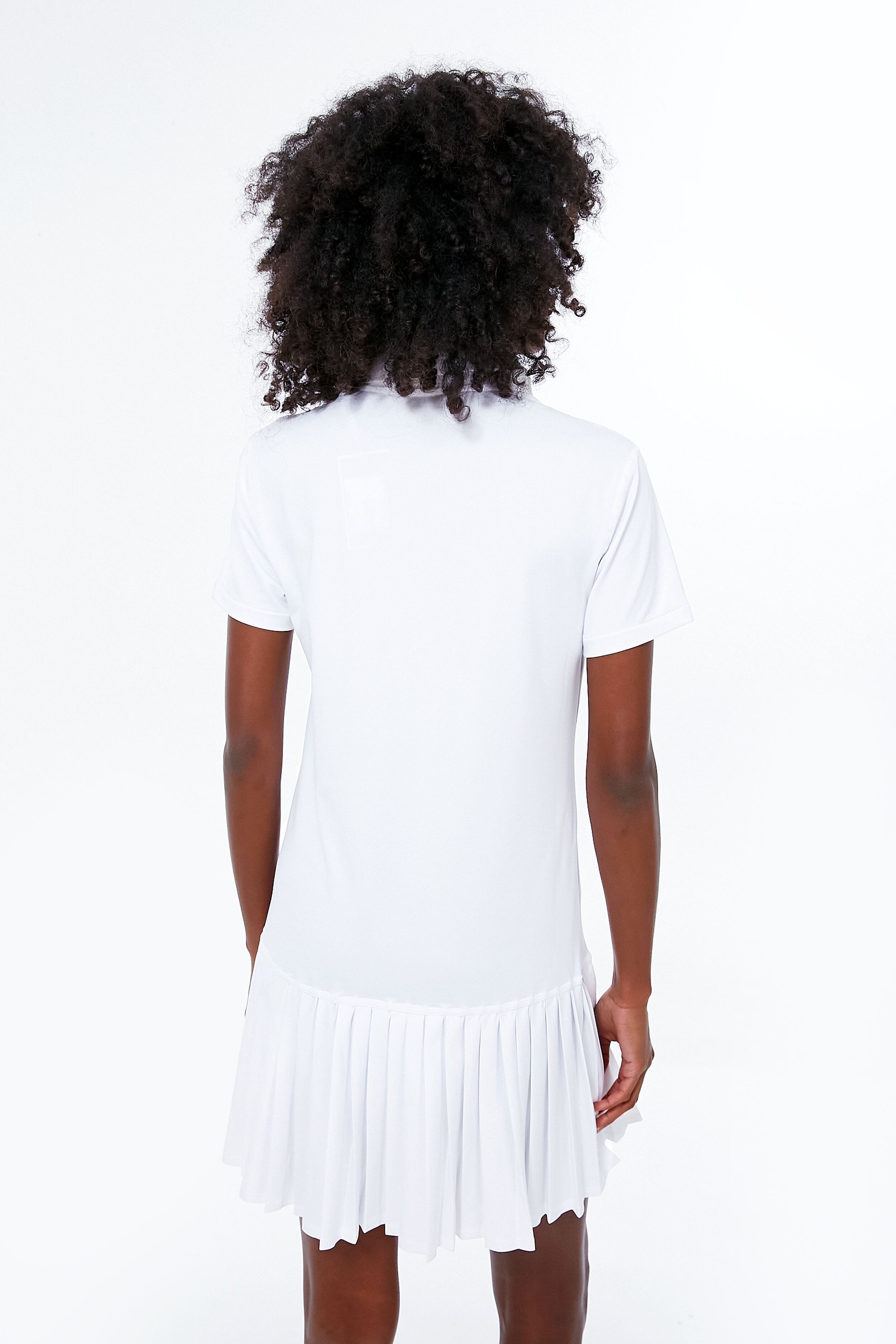 Meet the Sea Island Dress. a mini that is perfect both on and off the court. Featuring a spread collar for some polish. as well as a flattering dropped waist and a pleated skirt. this all-white number is one of our favorite sporty styles. Pair with sneakers and a tote for a chic athletic look that can do it all. from championship games to cappuccinos with friends.