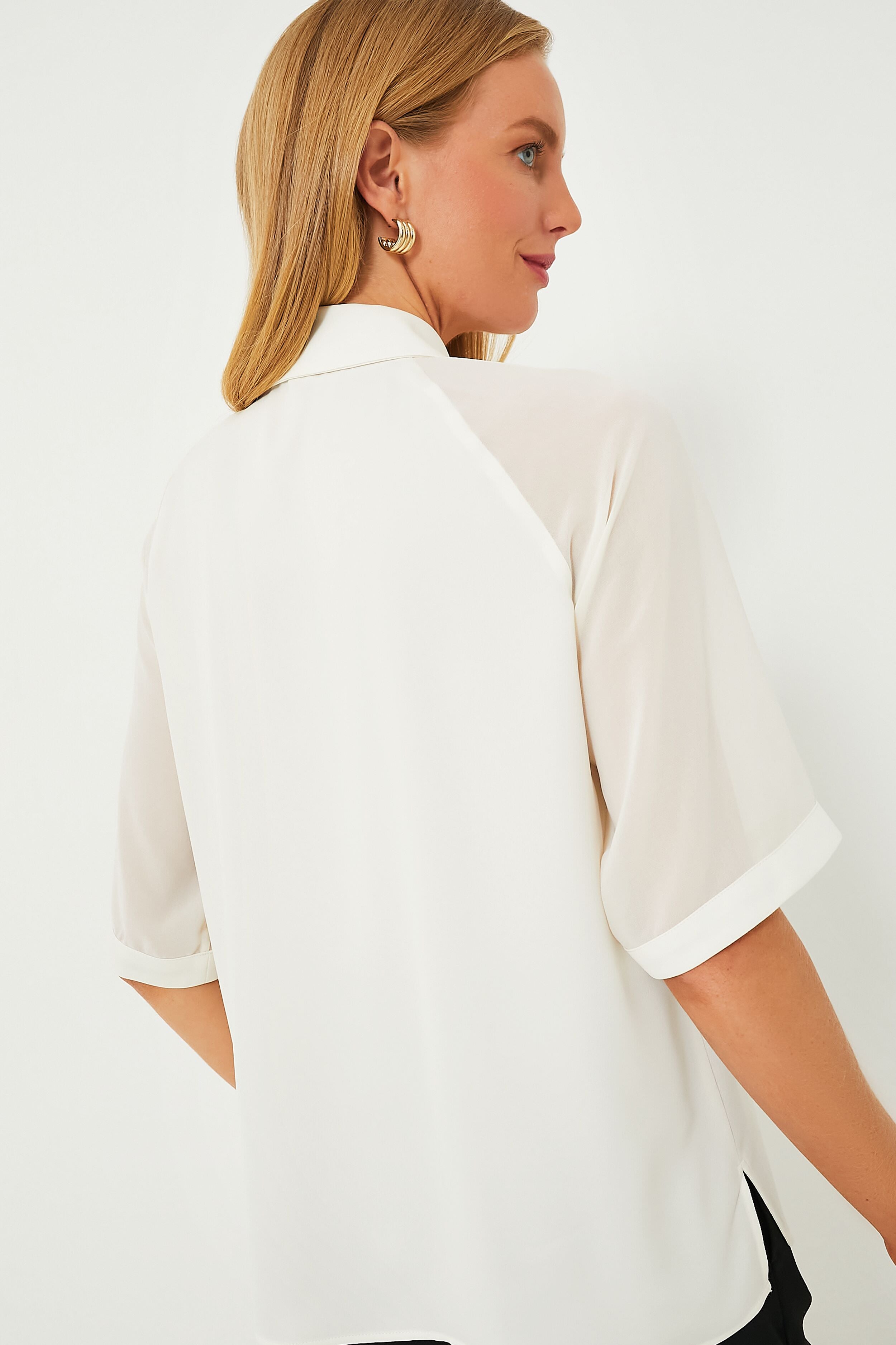 The Wool White Cerbero Blouse fulfills all your day to day wardrobe needs from the office. to brunch. to showers. to errands. This closet essential has a relaxed fit to keep you comfortable and semi transparent raglan sleeves offering an elegance. We love the gold-tone metal piercing detail at the neck which instantly elevates your look. Just add gold earrings and your go-to trousers for a chic appearance no matter where the day takes you.